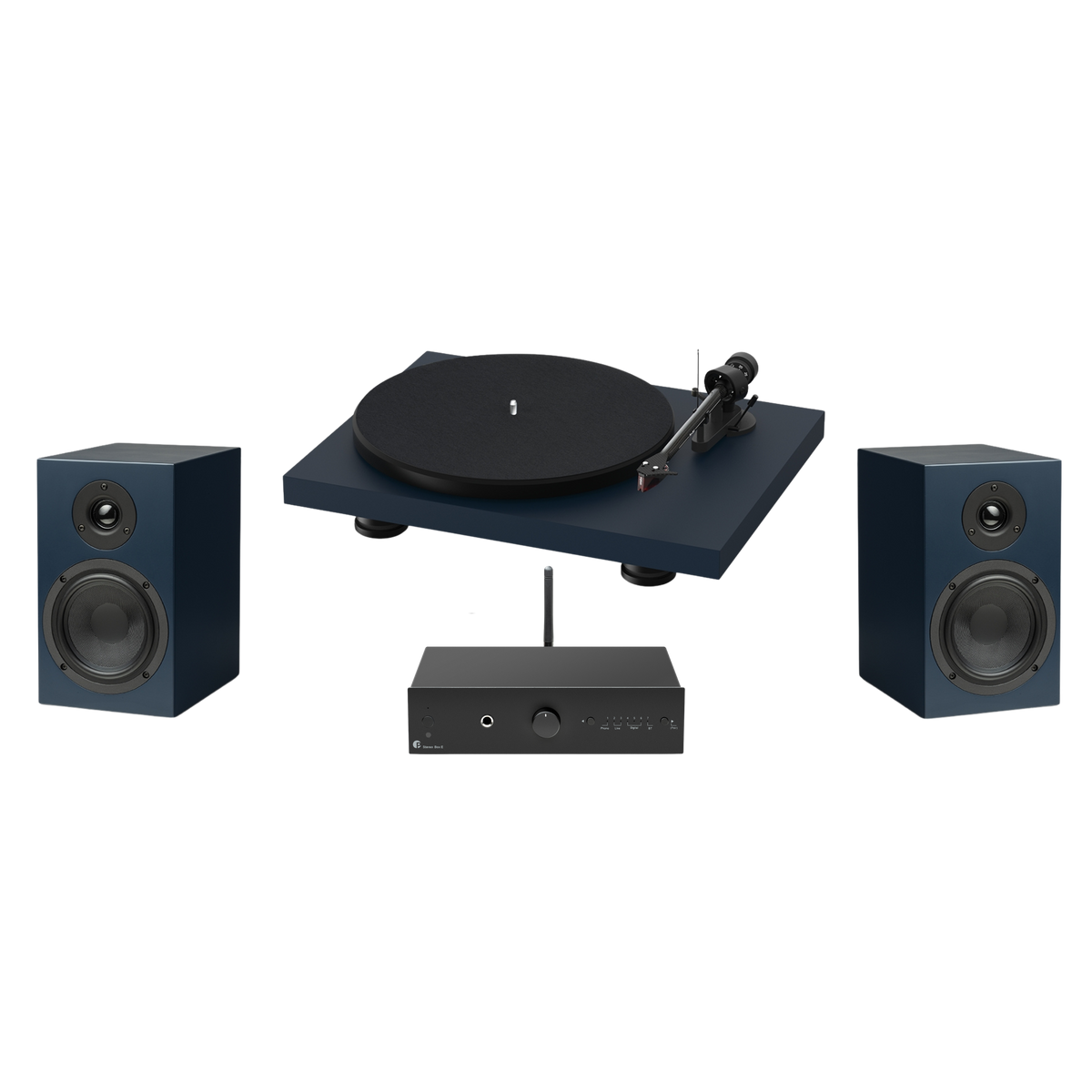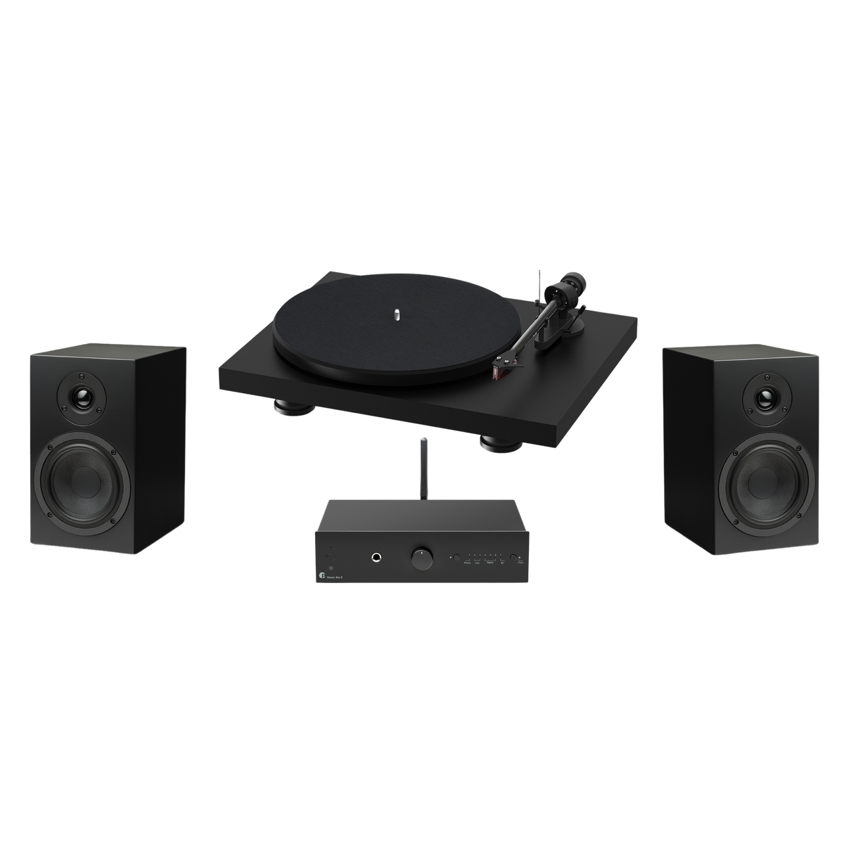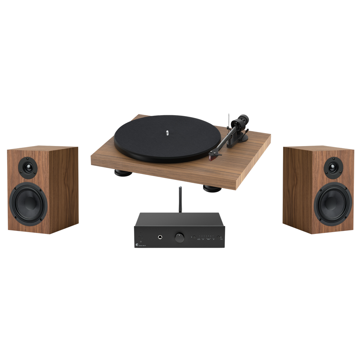 To complete this system, the speakers are finished in a satin veneer to match the Pro-Ject Debut Carbon Evo turntable finishes.