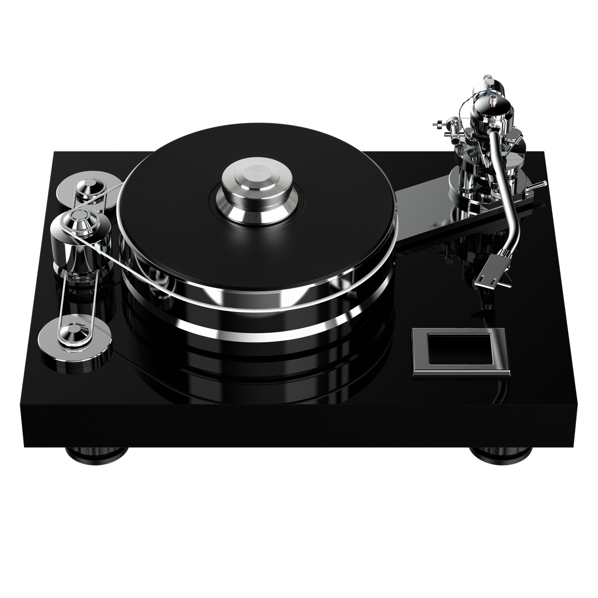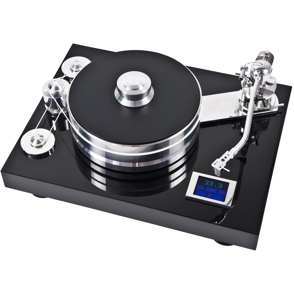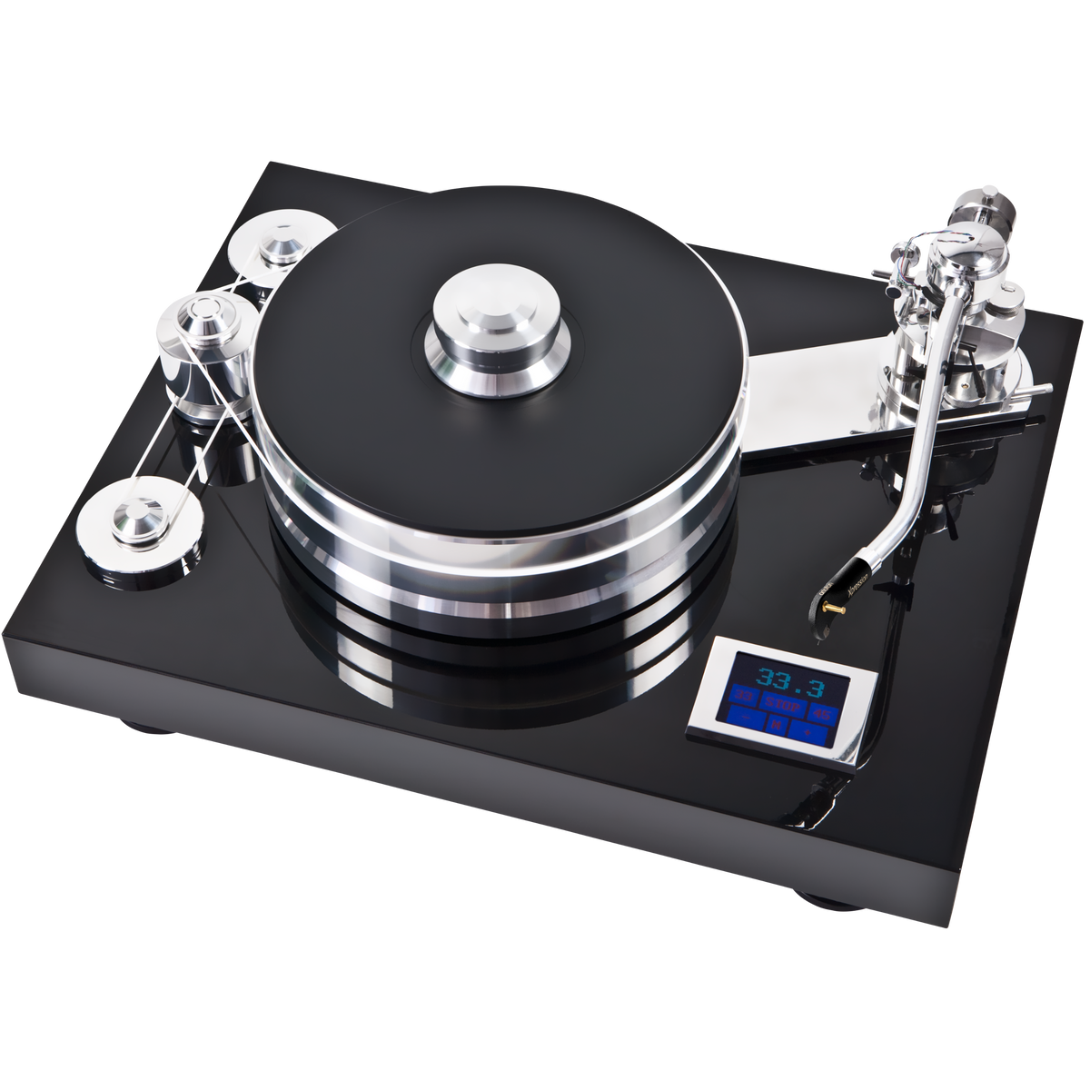 The 10 kg aluminium platter is TPE damped and sits on an inverted bearing which is magnetically decoupled. The vinyl layer on top is the perfect surface for your record.